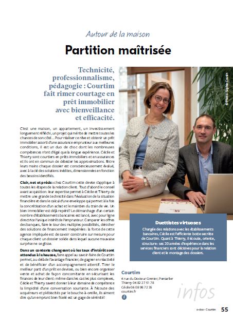 Ayant été successivement conseiller puis directeur d’agence d’une banque régionale pendant 15 ans, je suis depuis 8 ans courtier indépendant à Pontarlier. Je me considère plutôt comme un technicien des montages financiers. Passionné de foot, j’aime le VRAI travail d’équipe et je ne reste pas sur la touche.